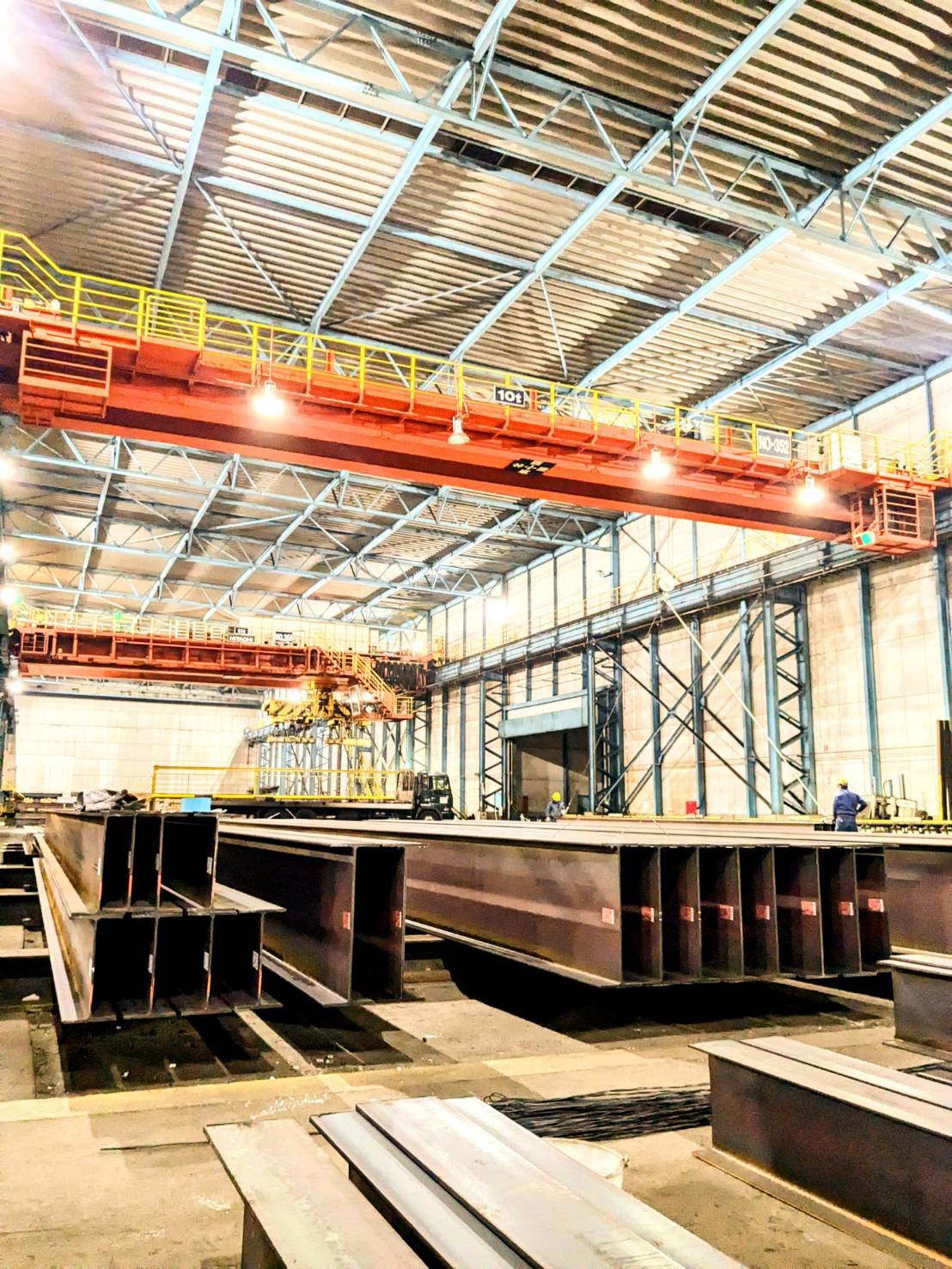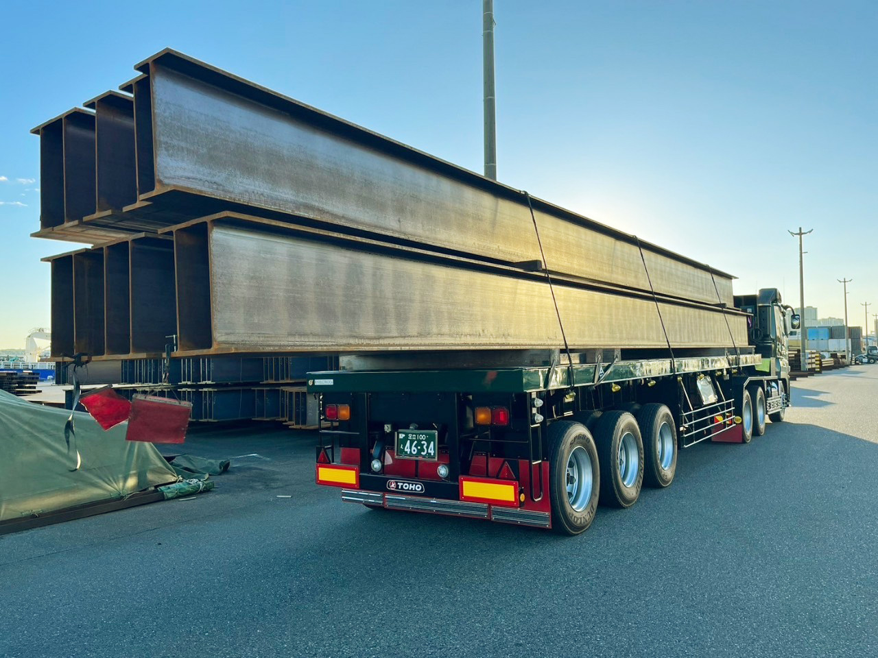 鋼材を陸上輸送しています。